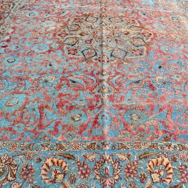 Collection of Oversized large Vintage faded Rugs -So you have a big room and want something unusual which is not too dark but not plain rather something classy and laid back, not one that steals the entire show, something that can subtly sit in the background. That’s why we love these vintage rugs for their fine pile and soft palettes. Our Antique Faded and Vintage rugs rarely reveal their original heritage, these rugs are known for having larger scale patterns and a casual look and feel but some are also coveted for their small scale, intricate medallion and all-over patterns utilizing palmettes and vine scrolls, which are famously Persian idioms. Rug enthusiasts find Vintage rugs superior for interiors as they add a formal more elegant touch.