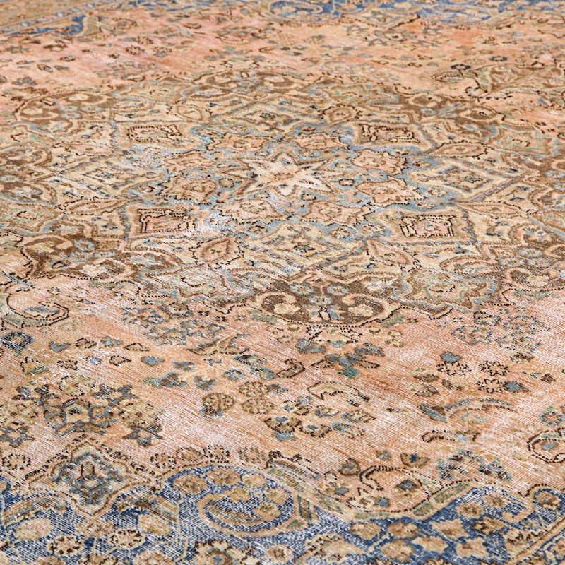 Collection of Oversized large Vintage faded Rugs -So you have a big room and want something unusual which is not too dark but not plain rather something classy and laid back, not one that steals the entire show, something that can subtly sit in the background. That’s why we love these vintage rugs for their fine pile and soft palettes. Our Antique Faded and Vintage rugs rarely reveal their original heritage, these rugs are known for having larger scale patterns and a casual look and feel but some are also coveted for their small scale, intricate medallion and all-over patterns utilizing palmettes and vine scrolls, which are famously Persian idioms. Rug enthusiasts find Vintage rugs superior for interiors as they add a formal more elegant touch.