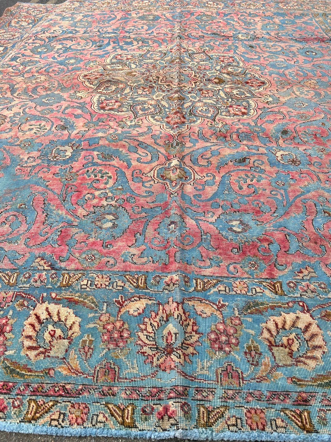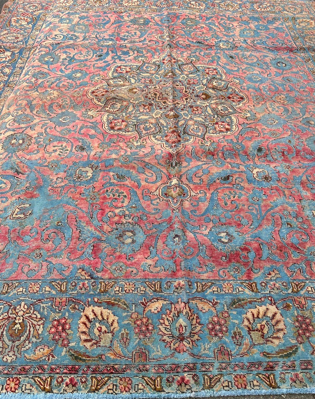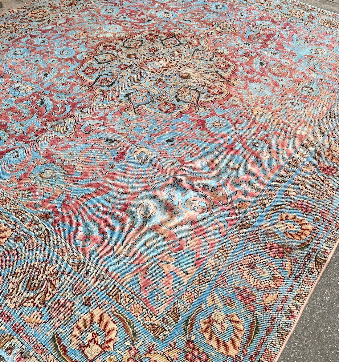 Collection of Oversized large Vintage faded Rugs -So you have a big room and want something unusual which is not too dark but not plain rather something classy and laid back, not one that steals the entire show, something that can subtly sit in the background. That’s why we love these vintage rugs for their fine pile and soft palettes. Our Antique Faded and Vintage rugs rarely reveal their original heritage, these rugs are known for having larger scale patterns and a casual look and feel but some are also coveted for their small scale, intricate medallion and all-over patterns utilizing palmettes and vine scrolls, which are famously Persian idioms. Rug enthusiasts find Vintage rugs superior for interiors as they add a formal more elegant touch.