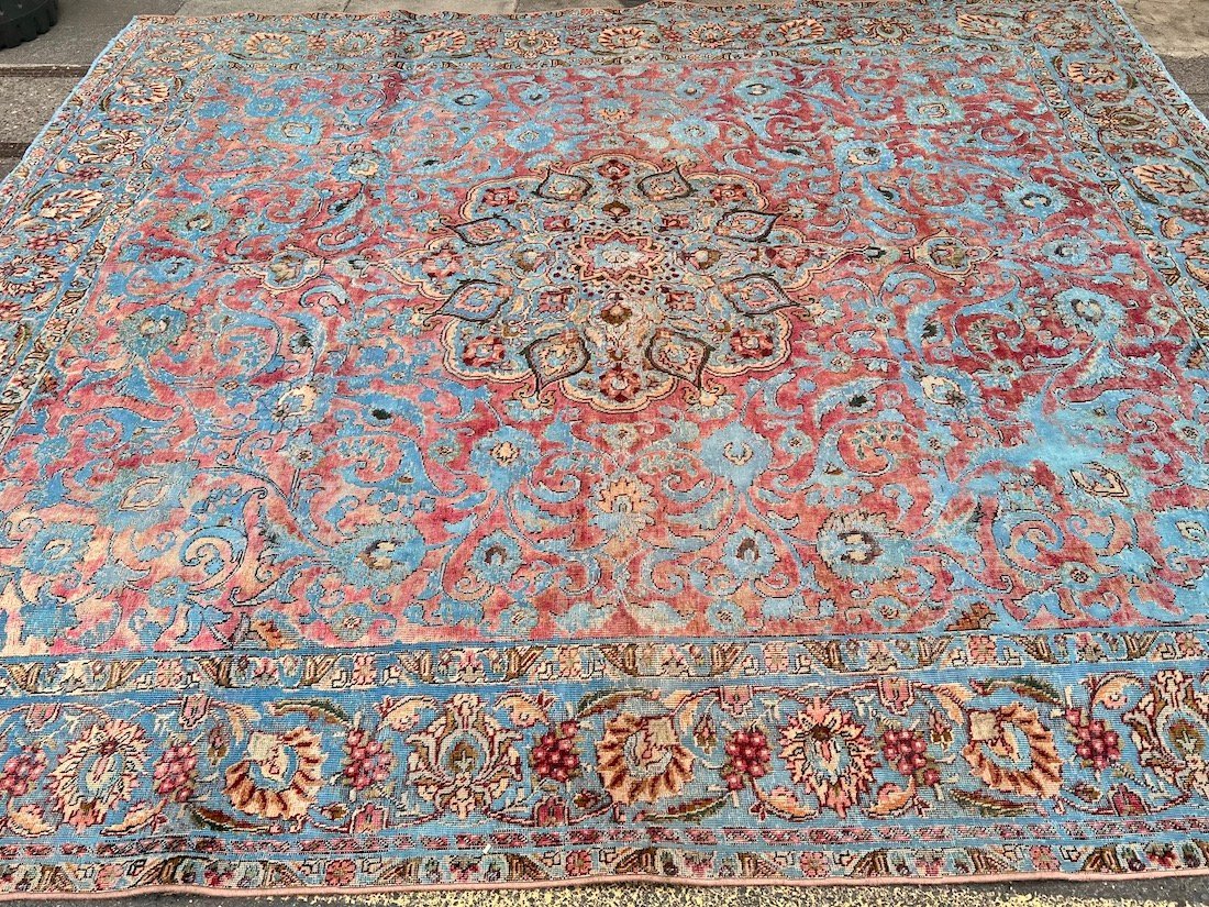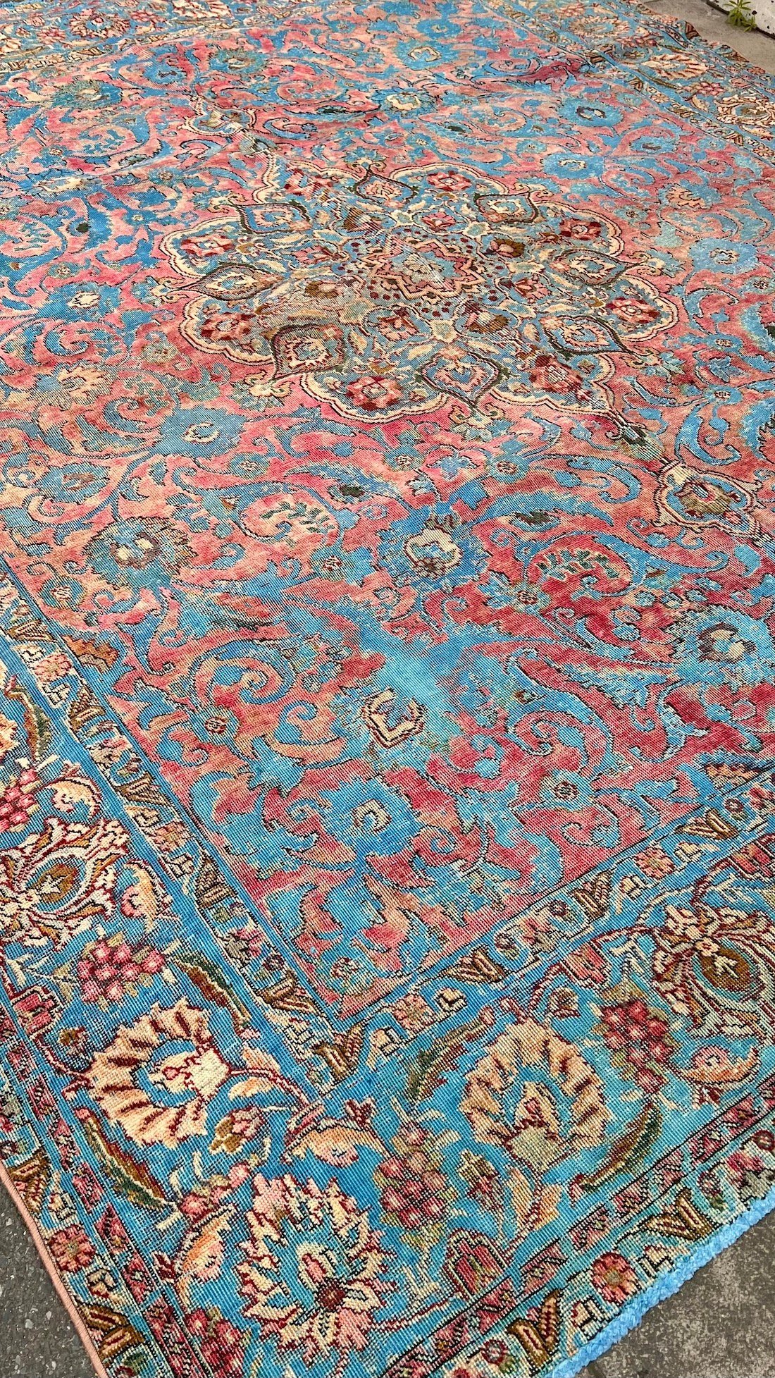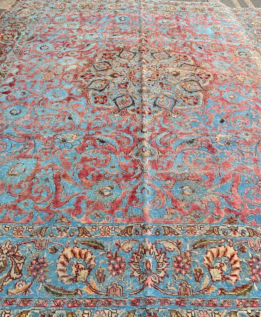 Collection of Oversized large Vintage faded Rugs -So you have a big room and want something unusual which is not too dark but not plain rather something classy and laid back, not one that steals the entire show, something that can subtly sit in the background. That’s why we love these vintage rugs for their fine pile and soft palettes. Our Antique Faded and Vintage rugs rarely reveal their original heritage, these rugs are known for having larger scale patterns and a casual look and feel but some are also coveted for their small scale, intricate medallion and all-over patterns utilizing palmettes and vine scrolls, which are famously Persian idioms. Rug enthusiasts find Vintage rugs superior for interiors as they add a formal more elegant touch.