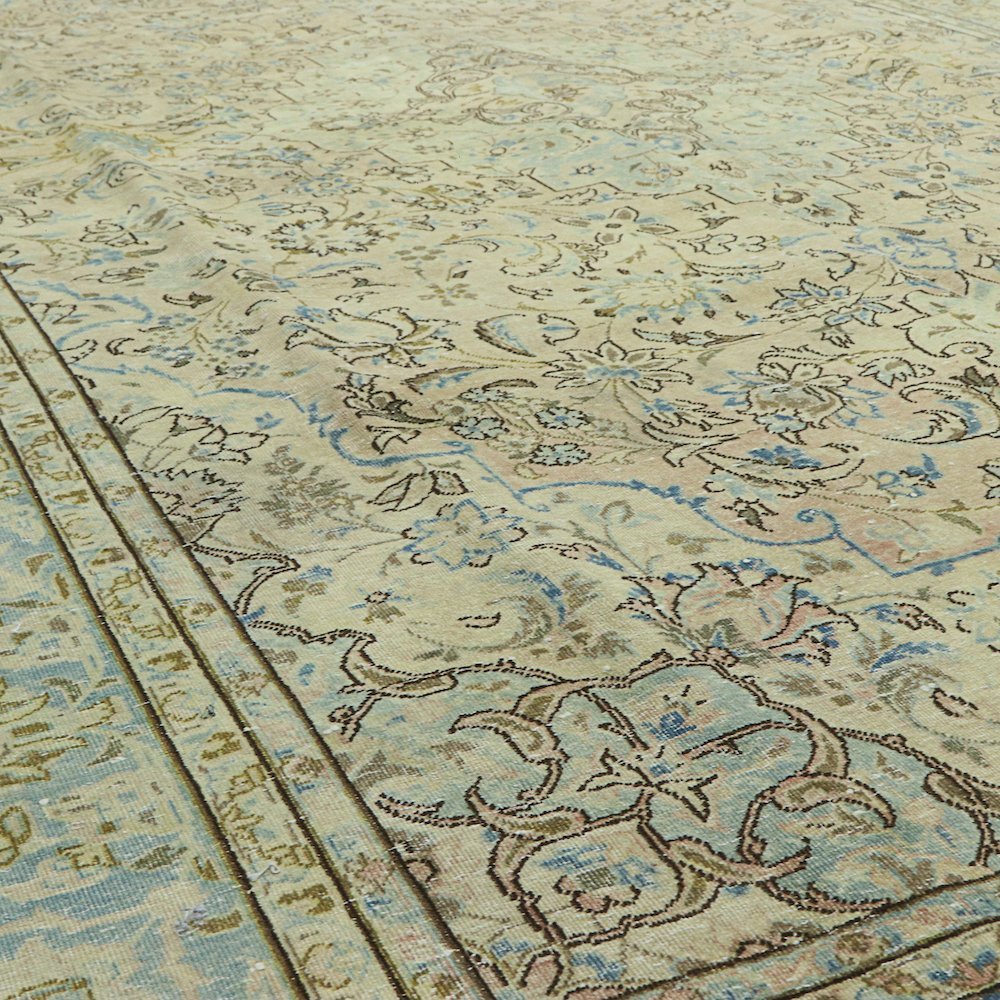 Collection of Oversized large Vintage faded Rugs -So you have a big room and want something unusual which is not too dark but not plain rather something classy and laid back, not one that steals the entire show, something that can subtly sit in the background. That’s why we love these vintage rugs for their fine pile and soft palettes. Our Antique Faded and Vintage rugs rarely reveal their original heritage, these rugs are known for having larger scale patterns and a casual look and feel but some are also coveted for their small scale, intricate medallion and all-over patterns utilizing palmettes and vine scrolls, which are famously Persian idioms. Rug enthusiasts find Vintage rugs superior for interiors as they add a formal more elegant touch.