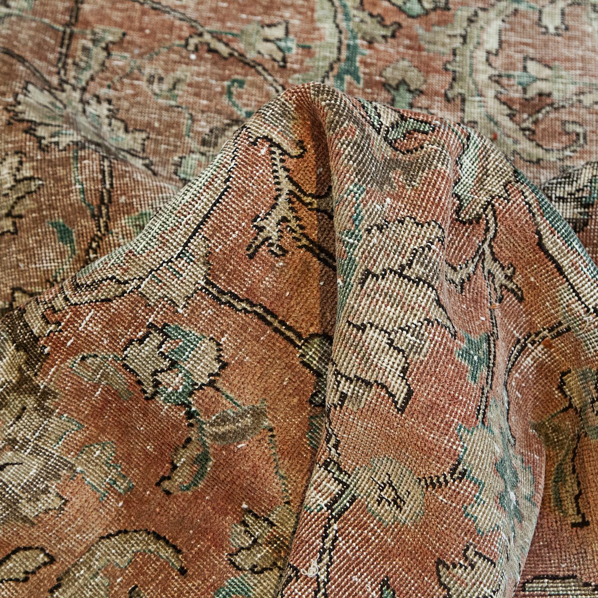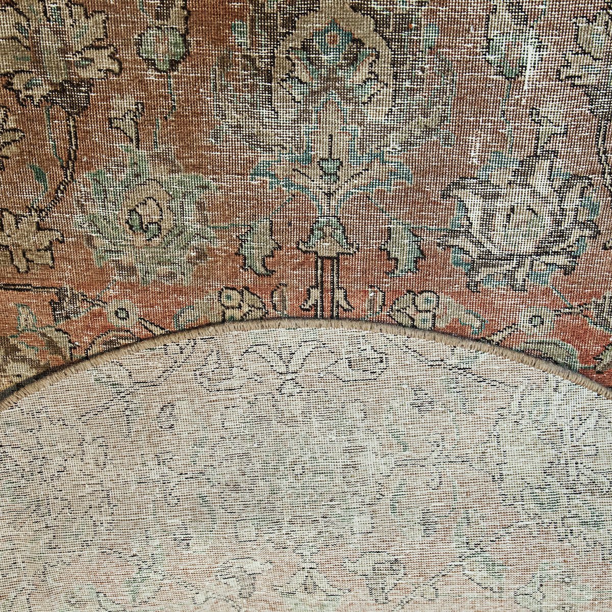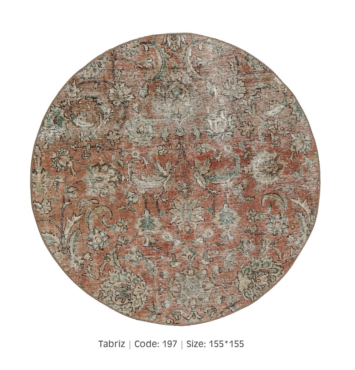 Collection of unique Vintage faded Round and Square Rugs – Rugs produced in the region of Persia span across a range of cultures and regions including parts of Iran, Azerbaijan, and Armenia. Many of the rarest and highest quality carpets have been sold from this region. Some Persian rugs carry geometric patterns and bolder colors, all-over lattice work often with a folklore feel while others have a central medallion with a floral border. The range of styles and patterns throughout the centuries woven in Iran was heavily influenced by the era of rule in which the particular region was under, which is a unique characteristic as weavers in some regions are of multiple ethnicities.
