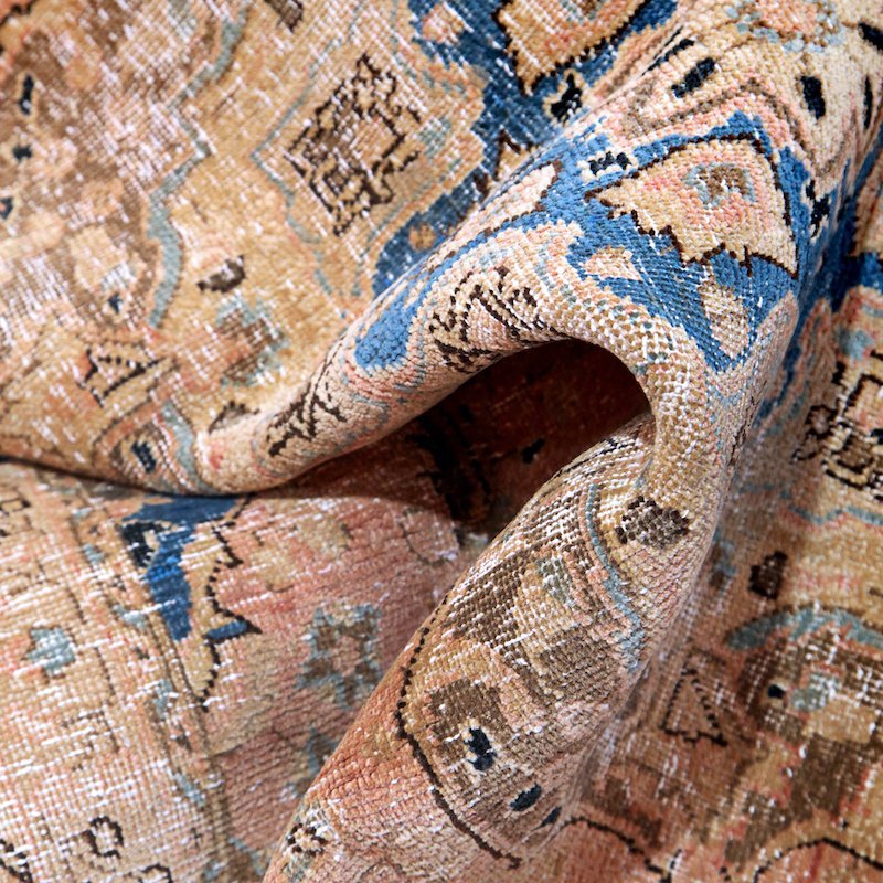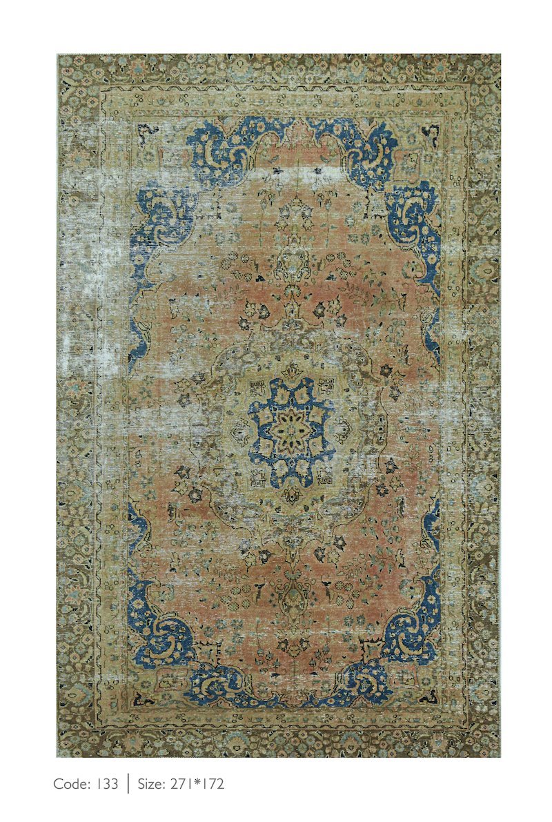 Collection of large Vintage faded rugs – Several small cities and villages are known as some of the major rug-producing areas in Persia. Kerman, Bidjar, Tabriz, Kashan, Sabzevar, Najafabad, Sirjan, Zanjan, and several others are types of rugs that are named after the cities or villages they are made in and are amongst the finest high-quality rugs using the best of Persian weaving traditions. Fine weaves, refined detailing, elegant designs, and beautiful color palettes are the most recognized traits in these rugs. Persian rugs are also known for having a very high knot count, making a very fine wool pile across the rug, which is a quality designers and rug enthusiasts seek in adding softness and quality to their interiors.