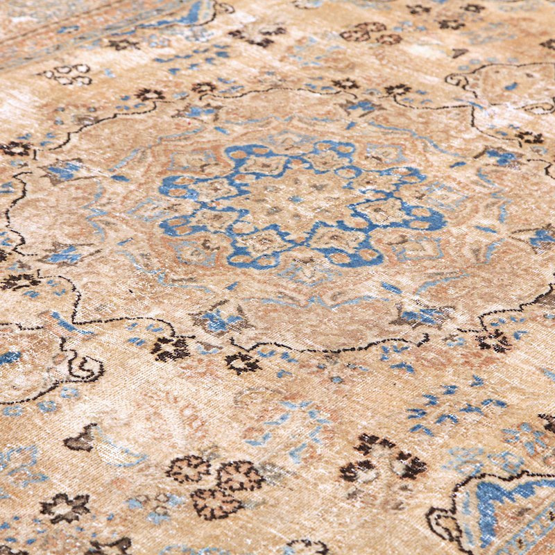 Collection of large Vintage faded rugs – Several small cities and villages are known as some of the major rug-producing areas in Persia. Kerman, Bidjar, Tabriz, Kashan, Sabzevar, Najafabad, Sirjan, Zanjan, and several others are types of rugs that are named after the cities or villages they are made in and are amongst the finest high-quality rugs using the best of Persian weaving traditions. Fine weaves, refined detailing, elegant designs, and beautiful color palettes are the most recognized traits in these rugs. Persian rugs are also known for having a very high knot count, making a very fine wool pile across the rug, which is a quality designers and rug enthusiasts seek in adding softness and quality to their interiors.