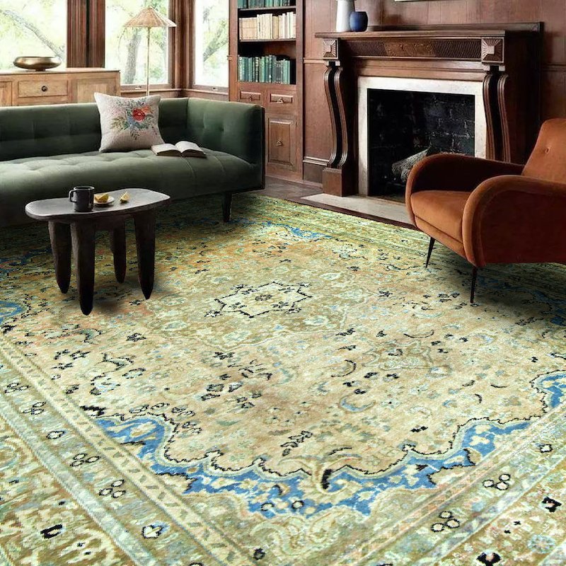 Collection of large Vintage faded rugs – Several small cities and villages are known as some of the major rug-producing areas in Persia. Kerman, Bidjar, Tabriz, Kashan, Sabzevar, Najafabad, Sirjan, Zanjan, and several others are types of rugs that are named after the cities or villages they are made in and are amongst the finest high-quality rugs using the best of Persian weaving traditions. Fine weaves, refined detailing, elegant designs, and beautiful color palettes are the most recognized traits in these rugs. Persian rugs are also known for having a very high knot count, making a very fine wool pile across the rug, which is a quality designers and rug enthusiasts seek in adding softness and quality to their interiors.