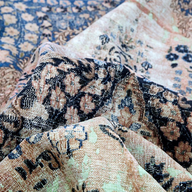 Collection of large Vintage faded rugs – Several small cities and villages are known as some of the major rug-producing areas in Persia. Kerman, Bidjar, Tabriz, Kashan, Sabzevar, Najafabad, Sirjan, Zanjan, and several others are types of rugs that are named after the cities or villages they are made in and are amongst the finest high-quality rugs using the best of Persian weaving traditions. Fine weaves, refined detailing, elegant designs, and beautiful color palettes are the most recognized traits in these rugs. Persian rugs are also known for having a very high knot count, making a very fine wool pile across the rug, which is a quality designers and rug enthusiasts seek in adding softness and quality to their interiors.
