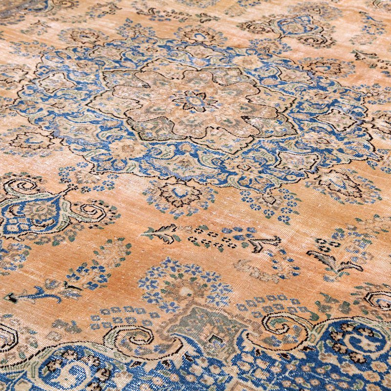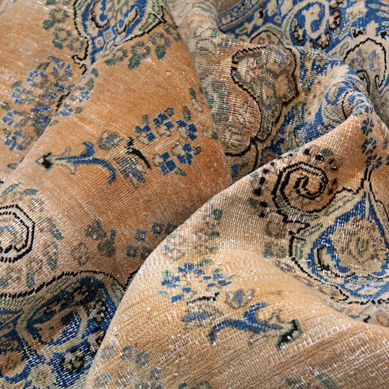 Collection of large Vintage faded rugs – Several small cities and villages are known as some of the major rug-producing areas in Persia. Kerman, Bidjar, Tabriz, Kashan, Sabzevar, Najafabad, Sirjan, Zanjan, and several others are types of rugs that are named after the cities or villages they are made in and are amongst the finest high-quality rugs using the best of Persian weaving traditions. Fine weaves, refined detailing, elegant designs, and beautiful color palettes are the most recognized traits in these rugs. Persian rugs are also known for having a very high knot count, making a very fine wool pile across the rug, which is a quality designers and rug enthusiasts seek in adding softness and quality to their interiors.