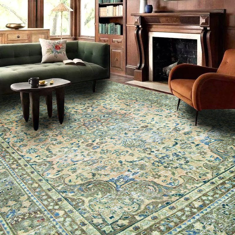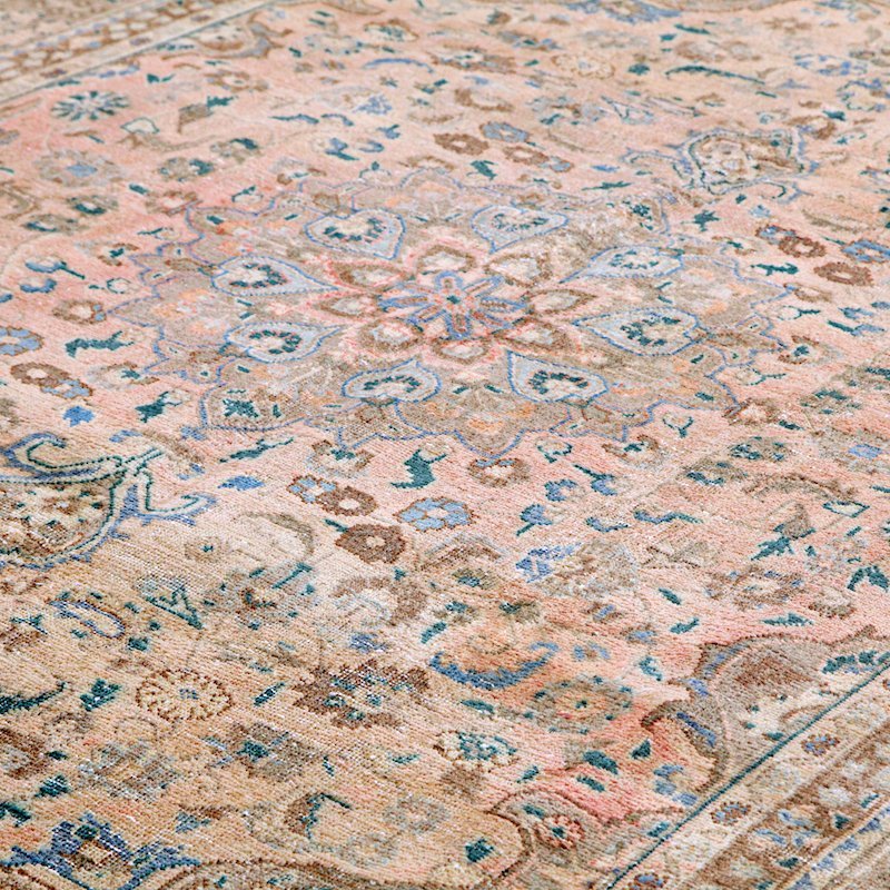 Collection of large Vintage faded rugs – Several small cities and villages are known as some of the major rug-producing areas in Persia. Kerman, Bidjar, Tabriz, Kashan, Sabzevar, Najafabad, Sirjan, Zanjan, and several others are types of rugs that are named after the cities or villages they are made in and are amongst the finest high-quality rugs using the best of Persian weaving traditions. Fine weaves, refined detailing, elegant designs, and beautiful color palettes are the most recognized traits in these rugs. Persian rugs are also known for having a very high knot count, making a very fine wool pile across the rug, which is a quality designers and rug enthusiasts seek in adding softness and quality to their interiors.